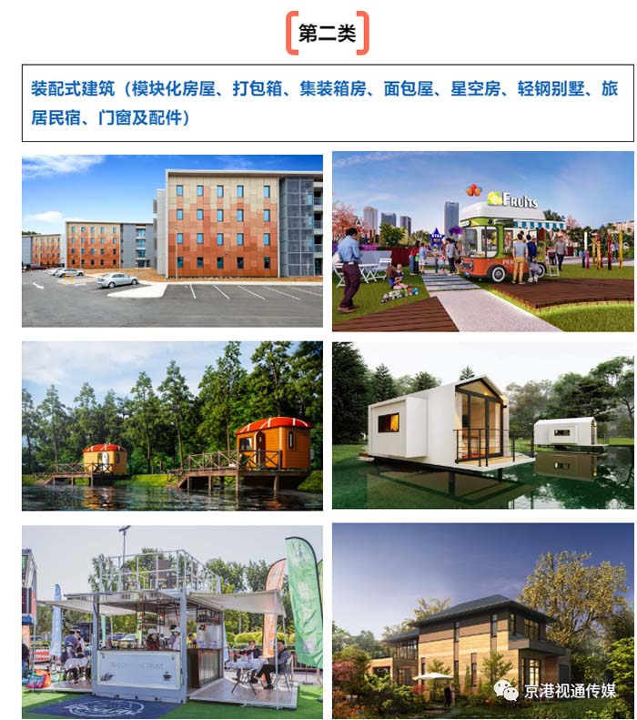 裝配式建筑、模塊化房屋、集裝箱房、輕鋼別墅、旅居民宿;